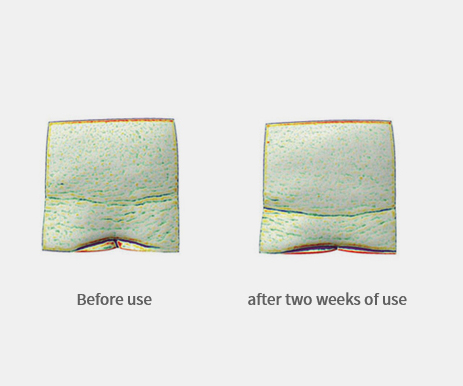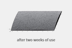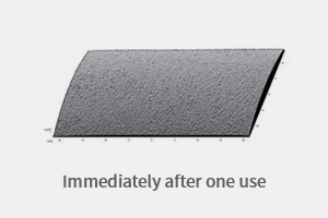평균 거칠기를 나타내는 Ra 값이 1회 사용 직후 7.48%, 2주 사용 후 12.7%가 감소되는 변화